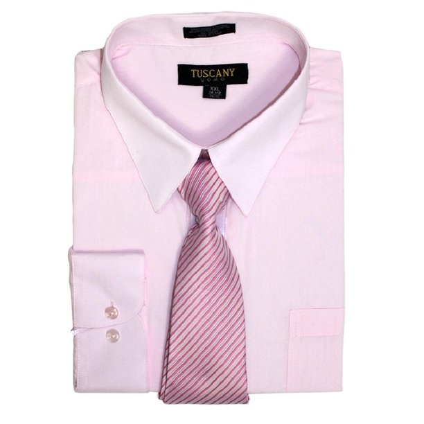 Mens Dress Shirts Tie Combo Set Pink Color Long Sleeve Fortini Sg21b